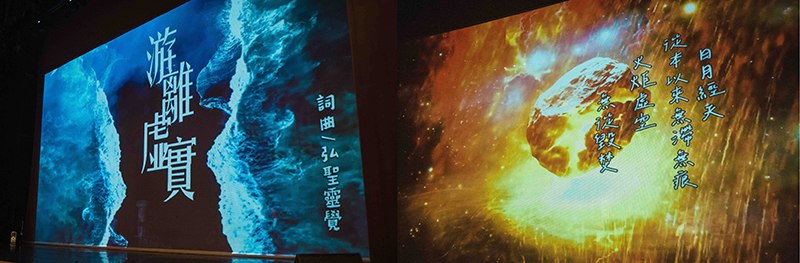 步入演藝廳禮堂,眾人靜心等待活動揭開序幕。此時,弘聖師父上人與國際級陣容共同打造的曠世鉅作——《AGAPE》黑膠唱片的四首選曲,先行讓耳朵解了渴,從聽覺緩緩開啟了身心靈的享宴。失焦的心神隨著流進的音律越來越凝聚,直至樂聲暫歇,沉入幾秒的寂靜處時……一陣磅礡音浪劃破寧靜,瞬間敲醒了沉睡的靈魂!這首《游離虛實》原是 師父上人近二十年前的自創曲,經 師父上人重新作詞、編曲後,再次將佛法演繹的令人贊嘆,堪稱一絕!當中的妙義和不可言說的震撼,唯有親臨現場,方能真切感受。