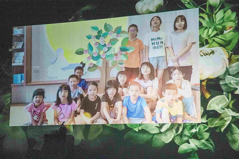 這次在主視覺設計也是別有一番用心,《杏壇春暖》的海報,以手繪勾勒出Q版親教師——弘聖師父上人於各個情境中慈愛教導的身影。覺者毫無保留的愛,如春風雨露,無有分別地灌溉滋養學子的覺田,無有一處不是覺者的教育場。