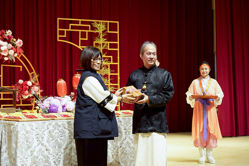 一覺元學會也準備了新春賀禮,由李晏菱理事長代為敬呈 師父上人並頂禮感恩 上師長年教導,表達學員們最深摯的感激之情。