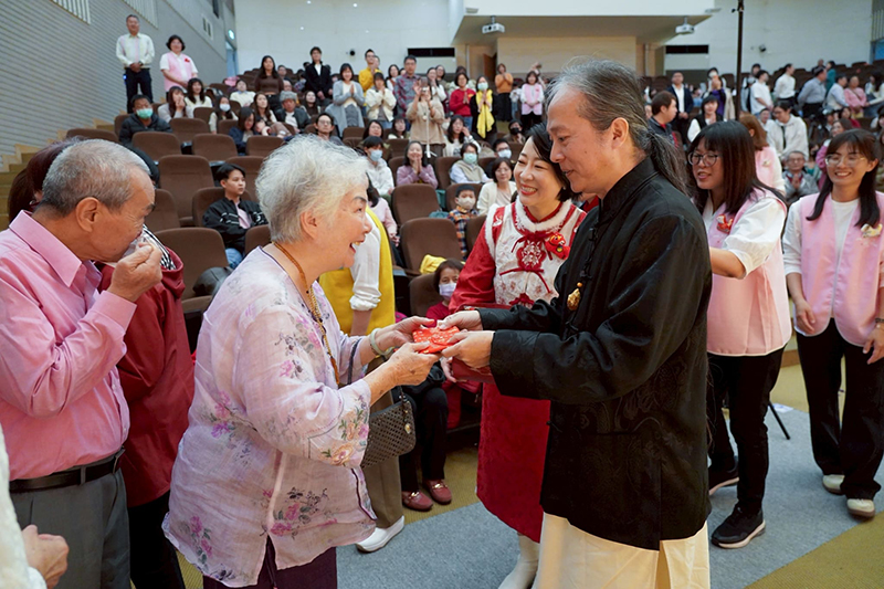 孝道是一切成就的根基,師父上人以身垂範,暖心為在場七十歲以上的長輩準備了敬老紅包,象徵一覺元的「老人年金」,給予長輩們滿滿的祝福。家有一老,如有一寶,師父上人說:「一覺元很多寶,我們要好好把這些寶顧好,不能失去寶!」並教導大家從生活應對中就去落實履踐孝道。